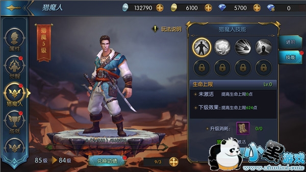 角色等级达到80级即可开启猎魔人系统,通过降低兑换猎魔人功绩,每消耗2万经验可获得1点功绩值,降级不可降到80级以下。