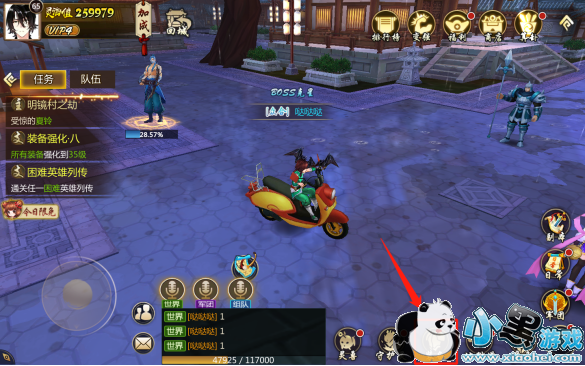 进入游戏界面后,您就可以在游戏的右下方看到一个带有装备文字和图案的图标,点击装备图标,即可进入到装备系统里查看和进行强化装备了呢。