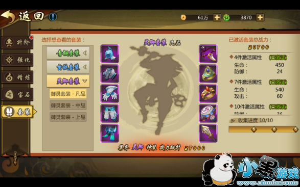 《镇魂无双》把强化装备分成了几个途径,分别有“升阶”、“强化”、“精炼”、“宝石”、“套装”五种,每种强化装备的途径都会影响到自身的灵海值哦。