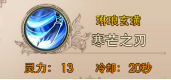 寒芒之刃:以玄铁刀光冲击敌人。造成直线物理伤害并造成晕眩