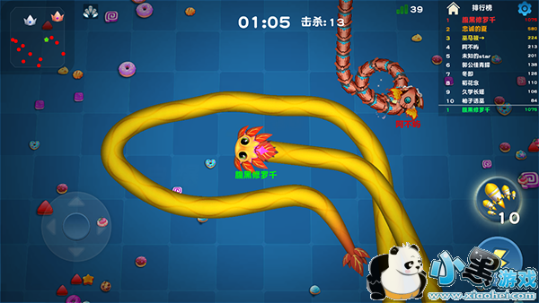 等成长为大蛇之后,就可以用风骚的走位完虐其他玩家啦!