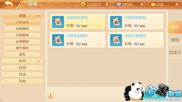 展示银币市场出售的道具,可通过银币购买,包含装备图纸,伙伴技能书等道具