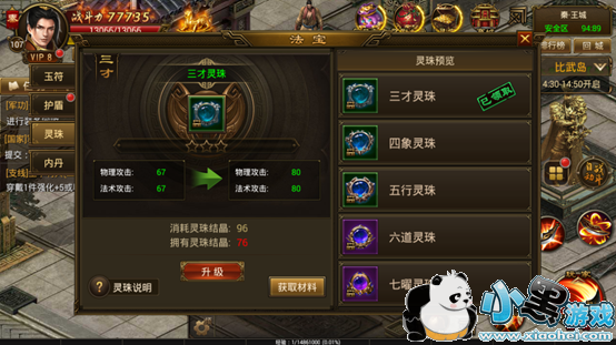 灵珠增加攻击,达到需求数值即可升级。