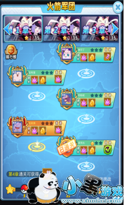 每章有5关,关卡有星级显示,越少的回合得到星级越高,最高为三星。达到章节的星级条件,可以领取像钻石,进化石,大量的金币等奖励,当然,首通也是有一定的奖励。通过的章节之后,每天可以扫荡,领取扫荡关卡的奖励。