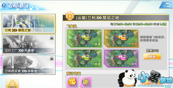 每24小时,重置1次飞艇运输。通关相应城镇解锁运输路线,路线1/2/3分别产出金币、装备、升星石。每日可运输1次飞艇。飞艇最多可被其他玩家抢夺1次。可邀请同公会玩家对自身飞艇进行守卫。通过提升飞艇科技,增加获得的资源。指定时间运输飞艇,获得1.5倍资源奖励。
