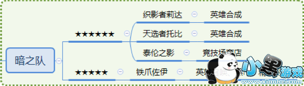 后期平民玩家队伍,和光之队有一定的竞争力,获取便利,但是培养成本高,用于平民玩家后期队伍转型和付费转化,在上线后补急于补全暗英雄。。