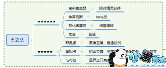 定位:游戏前期是主流平民队伍,队伍获取来源便利,但上升空间小,中后期通过合成获得尤金,通过神兽降临获得焚化者塞拉,但再往上走6星火队必须通过boss战和限时精灵来组成最终队伍,最终队伍是目前版本完成度最高的6星队。