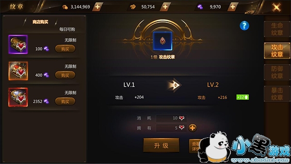 纹章一共分为四大类:生命纹章、攻击纹章、防御纹章、暴击纹章,需要使用对应属性的勋章进行激活和提升,玩家可以根据自己的需求搭配升级,得到一套属于自己的纹章。