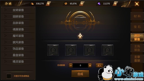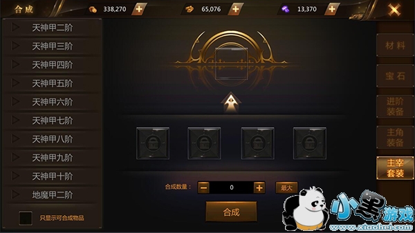 合成系统几乎是所有RPG手游都存在的基础系统,但是千万不要小看了这个系统,会玩的玩家一定会灵活的使用这个系统。《主宰之王》的合成系统分为五大类型,材料、宝石、进阶装备、主角装备、主宰套装。