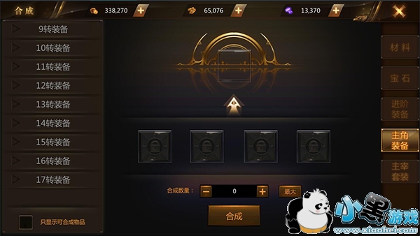 同样,我们有了多余的装备也可以进行合成,这样的设计其实是极大的节约了大家的时间,存够低阶装备,慢慢合成也是一条可行的道路,毕竟越高的装备,大家的需求越大,有价无市。注意的是只能从9阶装备开始合成哦。