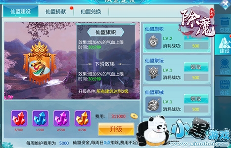 仙盟建设可以领取仙盟BUFF助你击杀BOSS快人一步。
