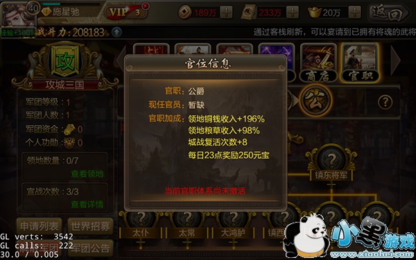 军团占领都城之后即可激活对应体系的官职,担任官员虽不能直接获取铜钱,但官员会提升大量封地铜钱产出量。
