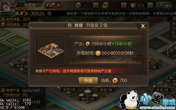 11级之后玩家将免费获得一块封地,在封地中可以建造各类建筑,其中民居与商铺可以自动产出铜钱。升级民居与商铺之后,铜钱产出量会变得更多,投资才会有回报,所以千万不要吝啬升级建筑的那一点点钱哦!