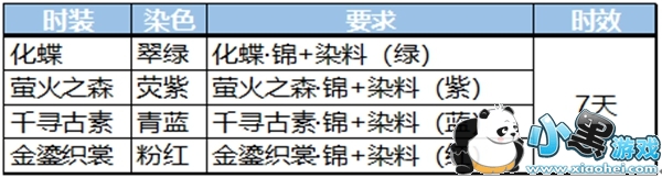 目前可染时装一览: