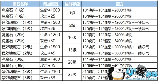 以下是魔石配方一览: