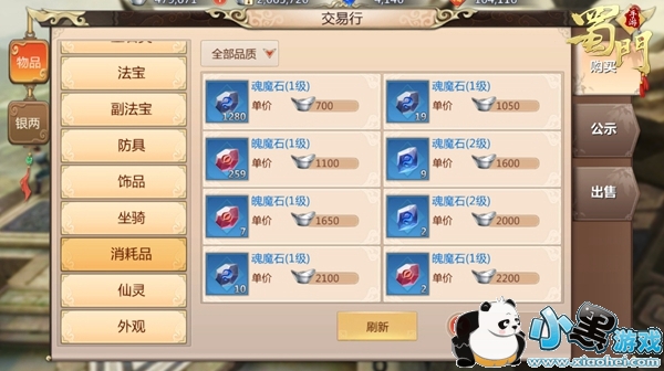 制作好的魔石还可以在交易行直接出售或购买