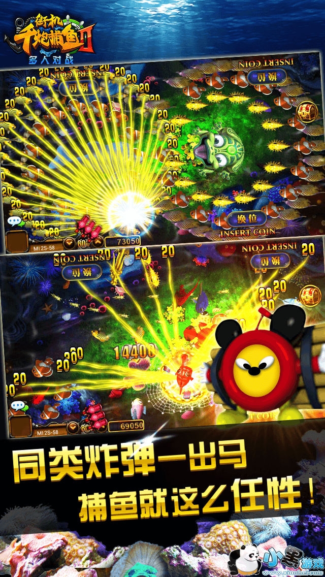 太烦人了,很多鱼都被挡了,我想打前面的金鲨!没关系,点击自动瞄准,指哪打哪,超高爆率,金币赚不停。让你在捕鱼过程中享受层层惊喜,游戏更加鲜明独立,让海底的玩家玩到爽,成千上万的五颜六色的金鱼等着你爆!放松的背景音乐,精致而丰富的捕鱼音效,各种鱼类,以及更多的BOSS等着你粉碎!还有色彩缤纷的打鱼玩法,快点加入吧!