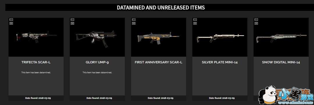 3/10日《绝地求生》的数据挖掘网站Skin-Tracker近日从游戏数据中又发现了一大批全新的枪械皮肤,让我们一起来看一下。