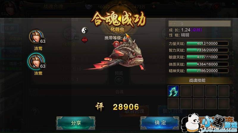 始魂通过合魂获得劫魂,从而大幅度提升实力,合魂后的劫魂,其性格、修为继承始魂,而成长和技能则受合魂双方影响。