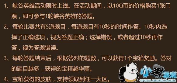 1、峡谷英雄活动限时上线。在活动期间,以10Q币的价格购买1张门票,即可参与1轮峡谷英雄的答题。