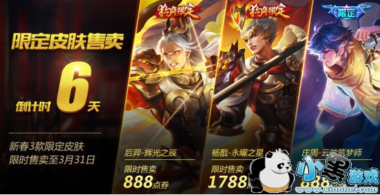 温馨提示:新春3款限定皮肤-杨戬-永曜之星、后羿-辉光之辰、庄周-云端筑梦师限时售卖将在3月31日结束,请各位召唤师抓紧时间购买~