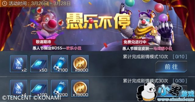 马上又到了愚人节了呢,在这个“恶搞有理”的节日里,缇娜也准备了“愚人好礼”~从3月26日至28日,累计完成剧情模式,就可以得到金币、武器精通卡、量子芯片、核能电池哟,快来闯关吧!
