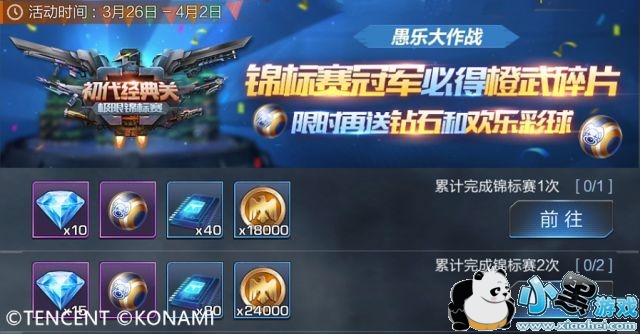 3月26日-4月2日,参与极限锦标赛【愚乐大作战】活动,不仅可以必得橙武碎片,还可以获得钻石和【欢乐彩球】!欢乐彩球可以兑换白熊英雄碎片和白熊愚人节限定皮肤!
