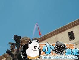 如图所示: 对准对面楼墙面,取一个向下的角度,利用手雷的引爆时间和墙面的弹跳,攻击楼下敌人 。