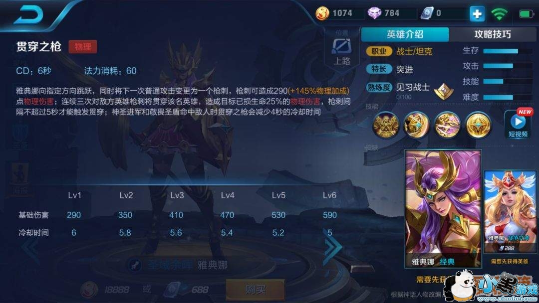 3、2技能贯穿之枪:主加技能,输出核心。有了1、2技能,雅典娜就非常灵活,也是她好玩的一点。
