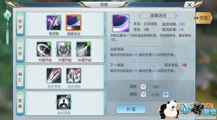 暗翼连击:对附近最多5个敌人造成物理伤害,可以连续释放,最多释放三次。