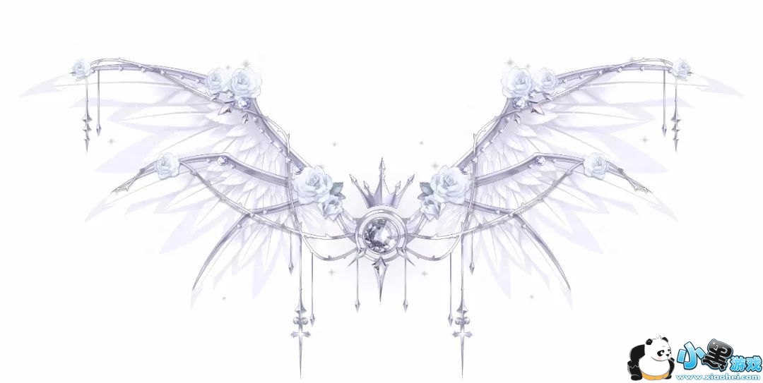 白玫瑰绽放于镶嵌着闪耀水晶的翅膀之上,如同圣殿中诞生的天使张开双翼。