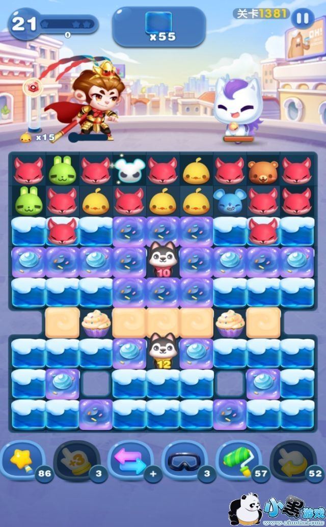 如果有特殊元素,尽量用其来消除哈士奇身上数字颜色的小动物。消除冰块时可以先行选择远离哈士奇的进行消除。