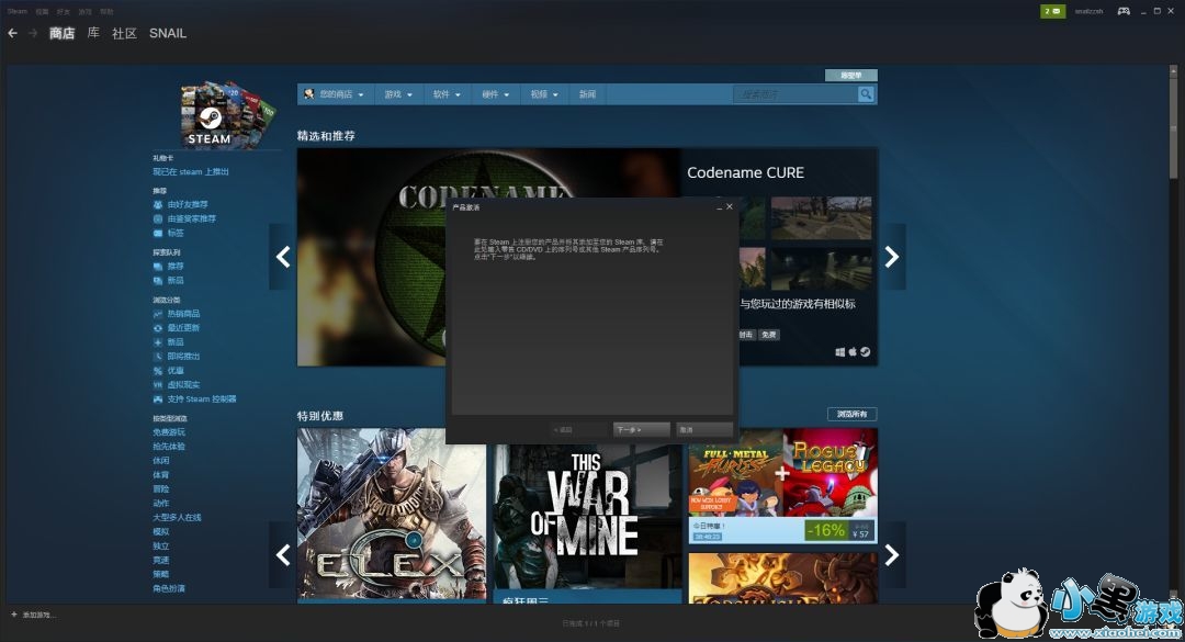 ④:在STEAM里点击游戏,在steam里激活产品,然后黏贴刚才的激活码
