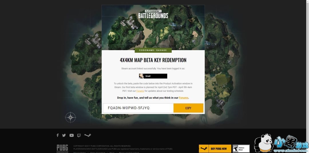 ①:点击这里:绝地求生Savage新地图激活码领取地址