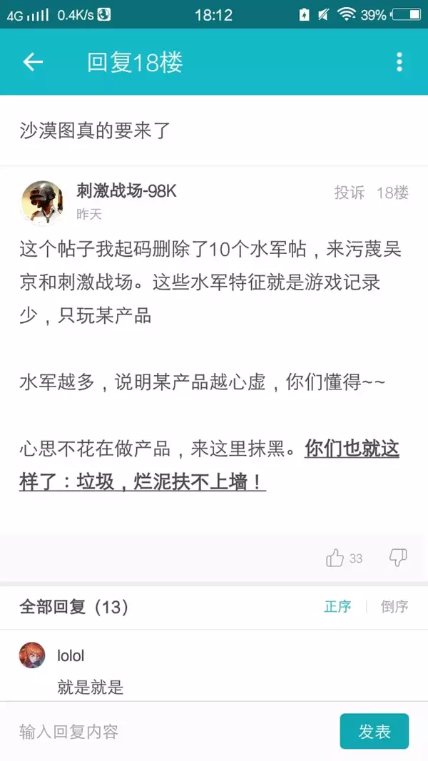 近日《全军出击》与《刺激战场》都更新了沙漠地图。全军出击因为优化已经够好,这次更新以细节为主(如玻璃、动作)而刺激战场的重心是在画质和优化上。小米手机用户的体验可能会很明显,以前中画质都发热掉帧的Mix2现在就算开个hdr高清+抗锯齿也能流畅运行。但Taptop今天并不太平,因为刺激战场的版主被光子工作室撤职了。