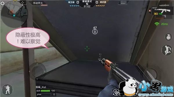 1、潜伏者由中路经下水道向B点推进时主要的观察方向为箱子处 ,几乎不关注点位。所以可发动先手优势 ,对敌人造成突袭。