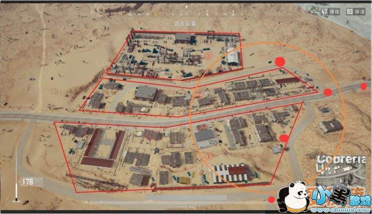 弊:位置太偏僻,南面的高山使进圈路线必须从公路走,有时候会绕路耽误时间。一旦有人一起跳此地,不能迅速解决战斗的话会严重耽误发育。而太晚进圈的话,既不能沿途补发育,又丧失的占点先机。