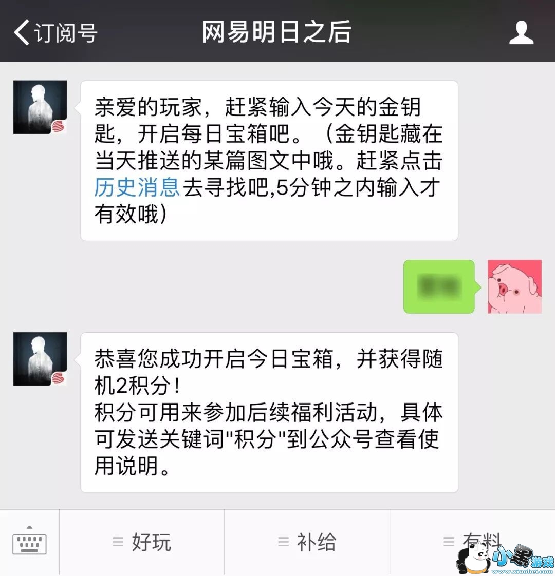 每次打开明日之后公众号,可以看到底部菜单栏,其中有一个非常诱人的菜单,叫做“补给” ,通过补给菜单下的子菜单互动,可以获取积分哦~