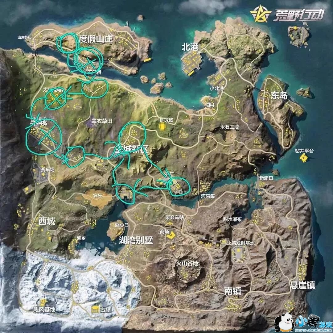度假山庄降落先把自己养肥然后过桥前往荒野特色地标太阳能电厂再到丰城进一步提升装备最后到主城、水厂等地方绕圈圈,躲猫猫让敌人摸不着头脑。