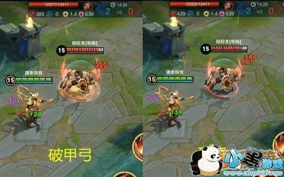 首次攻击:破甲弓造成368点伤害,破晓造成398点伤害,相差30点伤害。至于那个466点伤害属于末世的百分比额外伤害,因为物穿是一样的,所以造成的伤害理论上是一样的,实际上每次攻击都有偏差。