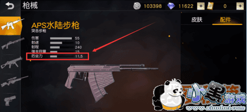 这次更新推出的APS水陆步枪的后坐力也不算太高当然也不算低,11.5的后坐力比AK47步枪少了0.5,小编觉得APS水陆步枪的超高伤害配备这个后坐力算是正常了,毕竟它也有着射程和没有配件的限制 。