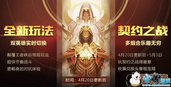 全新玩法-契约之战开启,每日参与契约之战,送契约徽章,收集兑换头像框宝箱!同时,选择组合不同职业(只判定英雄主职业)参与契约之战,还可获得铭文碎片好礼!
