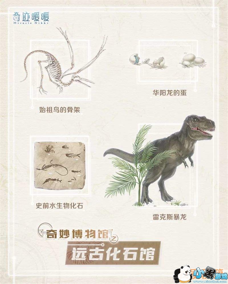 【始祖鸟的骨架】、【华阳龙的蛋】、【史前水生物化石】、【雷克斯暴龙】均为可移动摆件 哦!