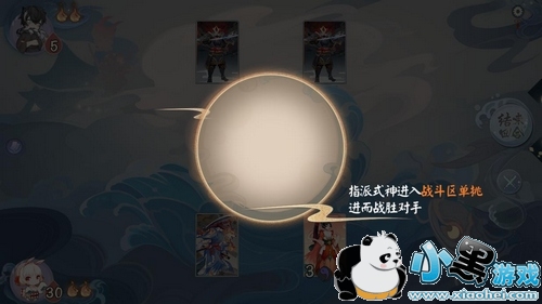 指派式神进入战斗区后即会自动作战:如果有对方的式神,则自动单挑;如果对方没有式神,则攻击对方牌手。