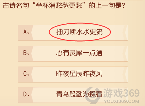 古诗名句举杯消愁愁更愁的上一句是?梦幻西游三维版科举答题中问了这样一个问题,小黑游戏为大家带来正确答案,还不清楚的小伙伴们一起来看看吧~