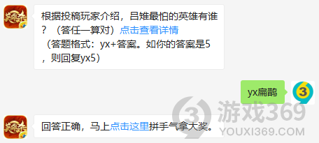 根据投稿玩家介绍,吕雉最怕的英雄有谁?答题格式:yx+答案,5月4日英雄杀每日一题的答案是什么?不知道的杀友们,进来看看正确答案吧!回答正确即可领取小师妹为大家准备的丰厚奖励了