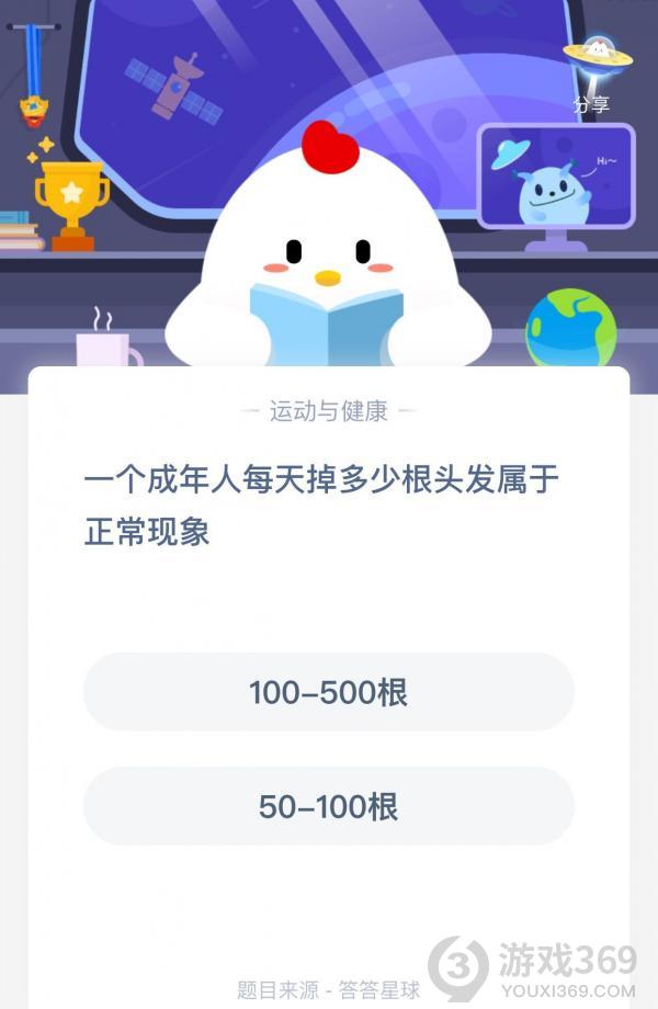 小鸡宝宝考考你,一个成年人每天掉多少根头发属于正常现象5月29日蚂蚁庄园每日一题的答案是什么?选对答案的话就可以领取180g小鸡饲料了,小伙伴们一起来看看今天的正确答案吧!