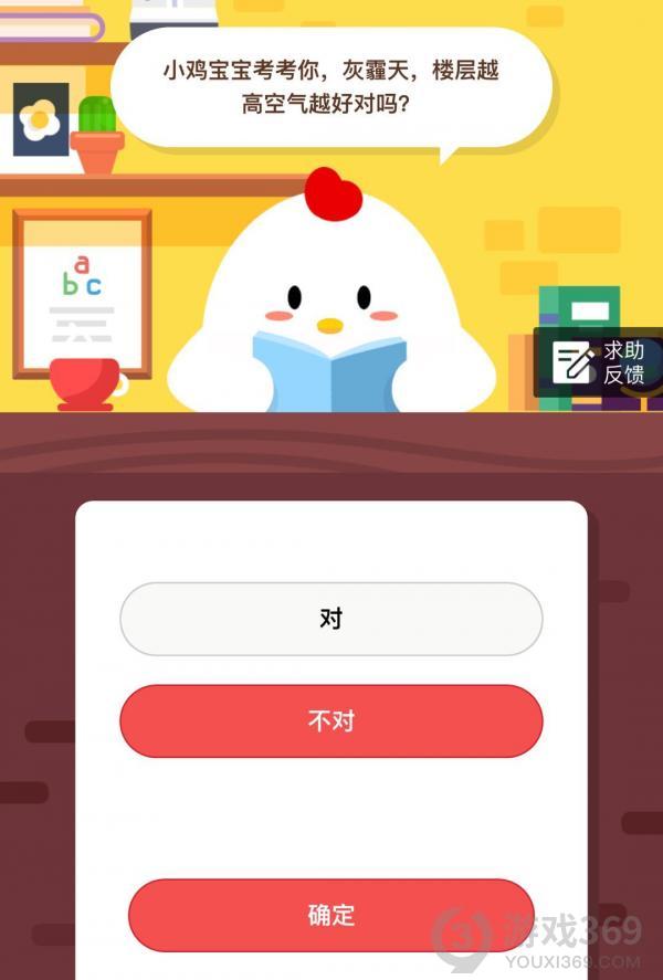 灰霾天气是楼层越高越好吗?可能还有很多小伙伴不知道在灰霾天是不是楼层越高空气越好,下面就跟小黑游戏一起来看看今天的正确答案吧,选对答案的话就可以领取180g小鸡饲料了!