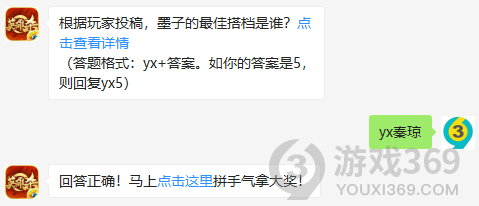 根据玩家投稿,墨子的最佳搭档是谁?答题格式:yx+答案,12月16日英雄杀每日一题的答案是什么?不知道的杀友们,进来看看正确答案吧!回答正确即可领取小师妹为大家准备的丰厚奖励了
