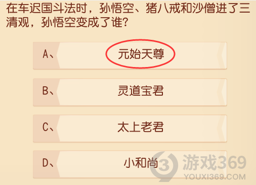 在车迟国斗法时孙悟空猪八戒和沙僧进了三清观孙悟空变成了谁?梦幻西游三维版科举答题中问了这样一个问题,小黑游戏为大家带来正确答案,还不清楚的小伙伴们一起来看看吧~